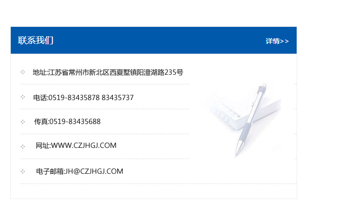 地址:常州市新北區友邦商務大廈1幢16、17層  電話:0519-85101652  傳真:0519-85112595  郵編:213022  網址:www_cz-jiayue_cn.cese2water.com  郵箱:xiajifengaa@163.com